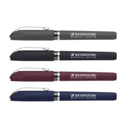 Many folks hand out customized pens at trade shows, client meetings, or other special events. They're popular among almost any crowd. But this means your pen needs to stand out, and the Soft Touch Cozy Gel Pen does the trick. A few details: